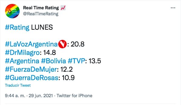 1. La Voz Argentina (Telefe) 20,8 puntos de rating