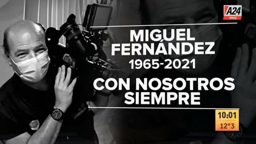 "Anoche nos enteramos a través de su hijo, quien también es camarógrafo nuestro, que Miguel Fernández, que salía con la cámara y el móvil todos los días con Fabián Rubino, falleció de Covid-9. Estaba internado, y lamentablemente se agravó rápidamente su situación. Teníamos una esperanza ayer, porque había presentado una mejoría, pero falleció", comentó conmovido Laje.