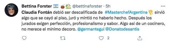Luego de protagonizar uno de los escándalos más importantes de MasterChef Celebrity, a Claudia Fontán se la pudo ver anoche de regreso en el certamen culinario de Telefe.