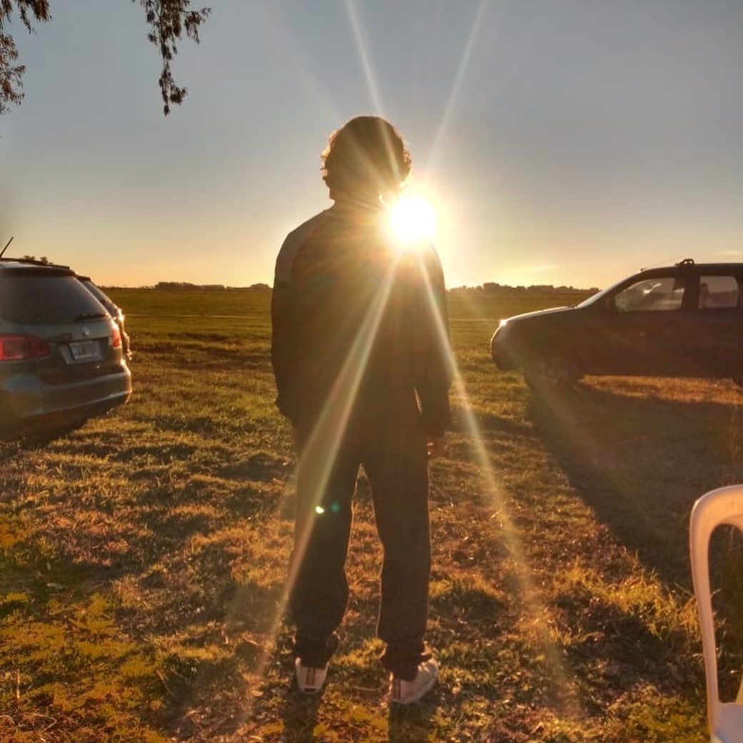 “Esta imagen resume un poco mi estado emocional de introspección y sanación (que hace muchísimo tiempo trabajo). Este viaje para filmar Humo bajo el agua... además de estar haciendo una hermosa película, me voy nuevo internamente y eso me hace muy feliz. Lo comparto porque ese es mi deseo para todos, que puedan lograr sanar internamente, que es la clave (humildemente) para este mundo en el que vivimos”, expresó en otra postal Martínez en la que se lo ve contemplando el cielo en un campo.