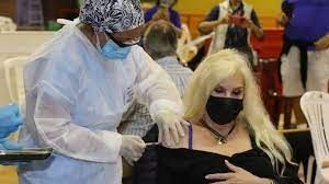 Por tener residencia legal en Uruguay, Susana tuvo derecho a recibir vacuna, y debido a su edad -77 años- le fue adjudicada la del laboratorio norteamericano. Llegó impecablemente vestida de negro y con un tapabocas que hacía juego con el look en el momento de ser inoculada.