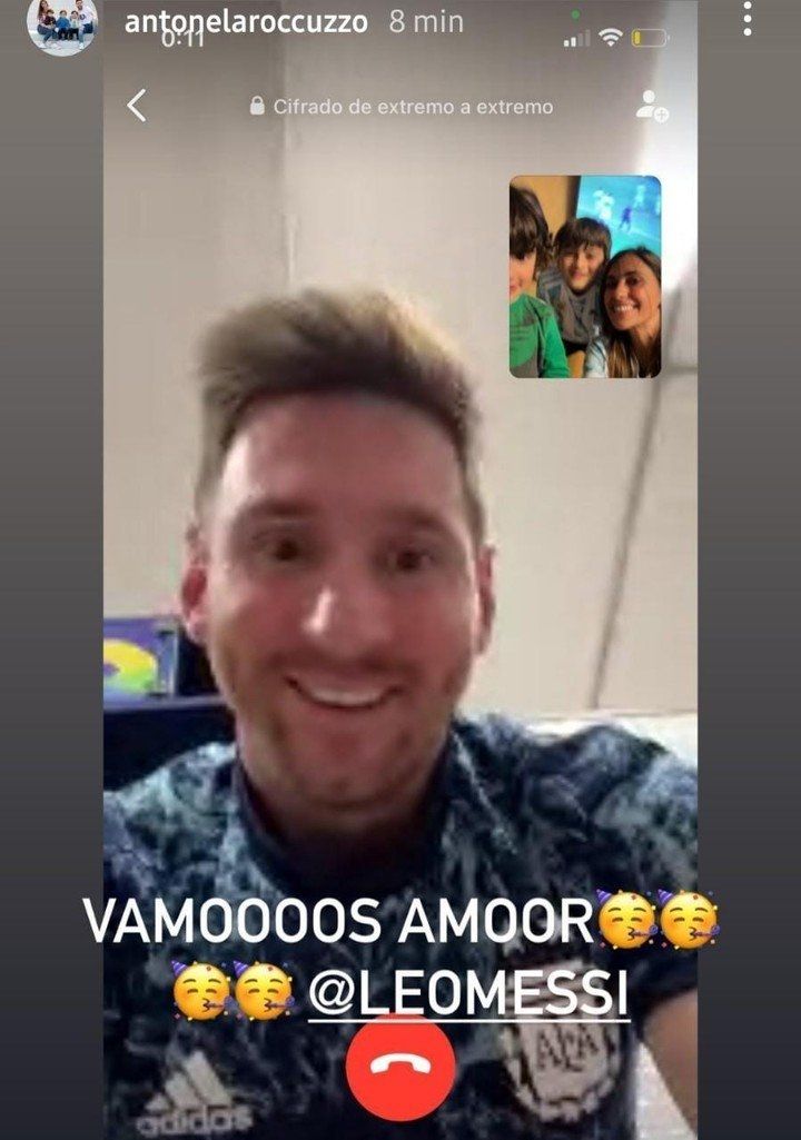 Apenas terminó la ceremonia de premiación, Lione Messi realizó una videollamada con Antonela y ella subió la captura a sus historias de Instagram. “Tu felicidad es la mía. Vamos, mi amor”, comentó la rosarina.