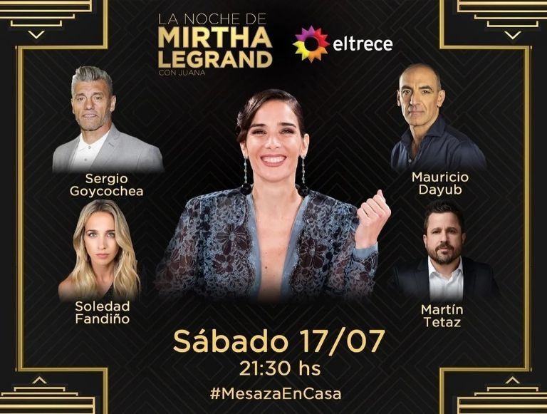 Por su parte, el domingo Juana tendrá una mesa cargada de figuras del mundo del espectáculo en Almorzando con Mirtha Legrand. La lista de invitados está compuesta por el director teatral, autor, dramaturgo y actor Pepe Cibrián; la cantante Gladys La Bomba Tucumana; el hombre orquesta Agustín Aristarán, Soy Rada cómo se lo conoce en el ambiente artístico; y Diego Bustamante, creador de la Asociación Civil Pata Pila.