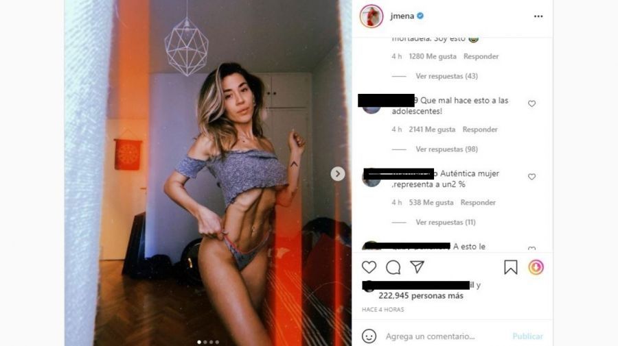 "Qué mal hace esto a las adolescentes", "Imagen no sana lamentablemente”, "Fomentás la anorexia amiga. Comé por favor", “Te amo. Pero no, no me parece un buen mensaje”, "Demasiado flaca. Hasta ahí nomás Jime", “Pedí ayuda Jimena”, fueron algunos de los comentarios en la red.