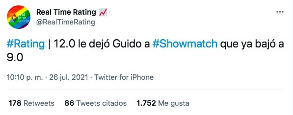 En su debut, el programa de entretenimiento arrancó con una base por encima de los 7 puntos. Con el desarrollo del ciclo, el número fue escalando y alcanzó los 12 puntos. De esa manera, Showmatch se beneficiaría al tener un piso más alto de lo habitual y también elevaría su cifra final.
