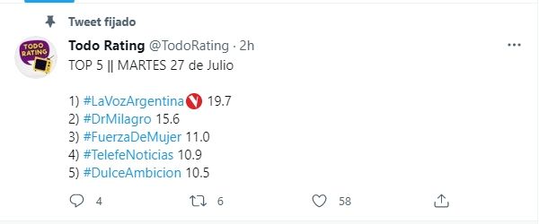 En ese sentido, el reality de Telefe promedió los 19.7 puntos de rating y fue la entrega con mayor cantidad de espectadores de la jornada. Su antecesora, la ficción turca Doctor Milagro midió 15.6.