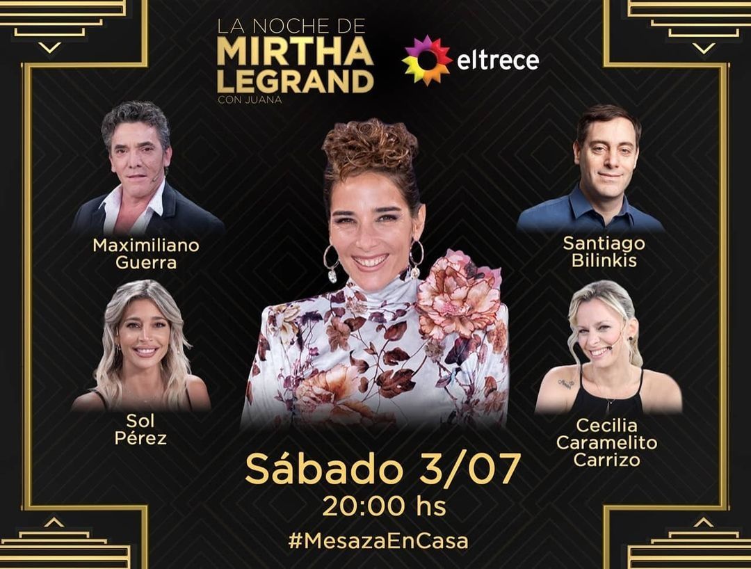 La Noche de Mirtha -el programa que conduce Juana Viale- adelantará su comienzo para las 20. En esta oportunidad, la conductora tendrá en su mesa al bailarín Maximiliano Guerra, que suele manifestarse públicamente en cuestiones vinculadas a la política; Sol Pérez, vedette y ex participante de Masterchef Celebrity; Santiago Bilinkis, emprendedor y especialista en tecnología; y Cecilia Caramelito Carrizo, que como animadora infantil entretuvo a toda una generación de niños con su música y sus bailes.
