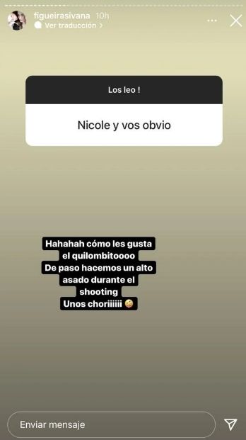 "Ja, ja, ja, cómo les gusta el quilombito... De paso, hacemos un alto asado durante el shooting... Unos choris...", cerró, irónica.