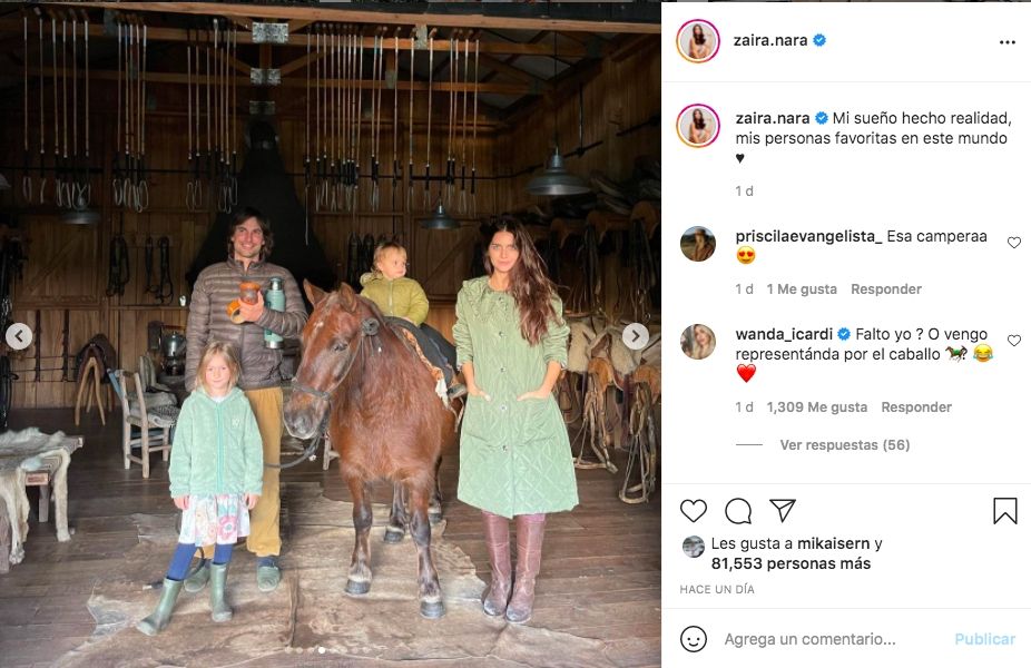El posteo de Zaira cosechó más de 81 mil Me Gusta y acumuló cintos de comentarios. Y entre ellos, el de Wanda que no dejó pasar por alto su ausencia en las imágenes. Con mucho humor, la empresaria hizo un reclamo: "¿Falto yo? ¿O vengo representada por el caballo?".