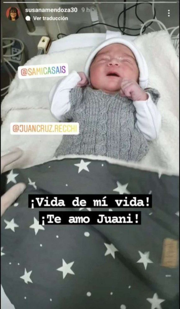 La abuela del bebé la encargada de presentarlo en sociedad con una foto en la red. “¡Vida de mi vida! ¡Ta amo, Juani!”, escribió este lunes Susana Mendoza, mamá de Casais, en una story.