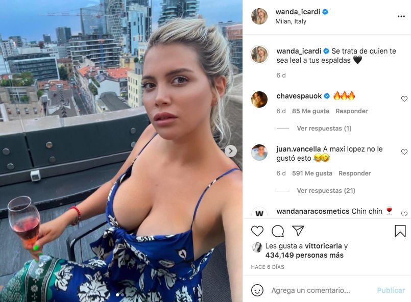 Pero el posteo que coronó los rumores fue uno de la empresaria. Wanda sorprendió con una llamativa publicación en el que se mostró super sensual y una contundente frase: "Se trata de quién sea leal a tus espaldas", escribió junto a un significativo emoji de corazón negro.