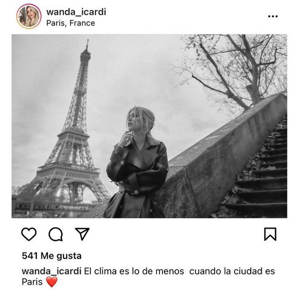 Después de este particular acercamiento virtual, la empresaria compartió una foto en blanco y negro con la Torre Eiffel de fondo y escribió: "El clima es lo de menos cuando la ciudad es París". En la imagen se la veía con un impermeable en un día nublado y lluvioso. Aunque la postal no contaba con ninguna referencia directa a la llegada de Messi, sorpresivamente decidió borrar de su feed el posteo.