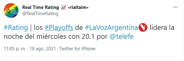 Rating: el fuerte impacto de audiencia de La Voz Argentina con los inicios de los playoffs