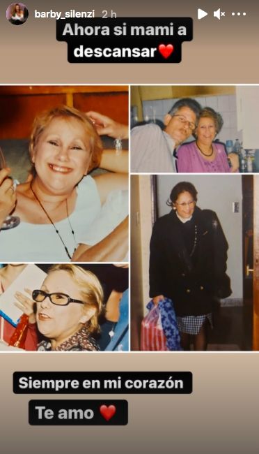 Barby Silenzi confirmó esta mañana la triste noticia de la muerte de su madre. La bailarina y pareja del Polaco compartió en sus redes sociales varias imágenes para homenajearla.