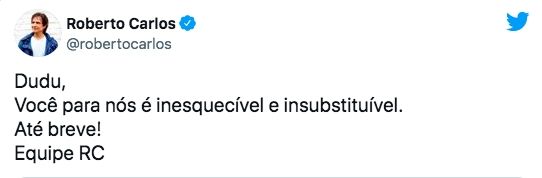 Las autoridades del hospital donde falleció Dudu publicó un mensaje lamentado la noticia: "El Hospital Israelita Albert Einstein comunica, con pesar, el fallecimiento del señor Roberto Carlos Braga II (Dudu Braga), a las 14:21 horas, como consecuencia de un cáncer".