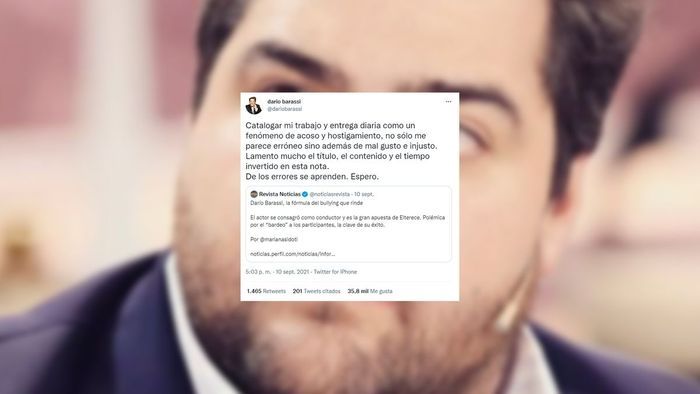 Darío Barassi no se quedó callado y retrucó indignado: "Catalogar mi trabajo y entrega diaria como un fenómeno de acoso y hostigamiento, no sólo me parece erróneo sino además de mal gusto e injusto. Lamento mucho el título, el contenido y el tiempo invertido en esta nota. De los errores se aprenden. Espero".