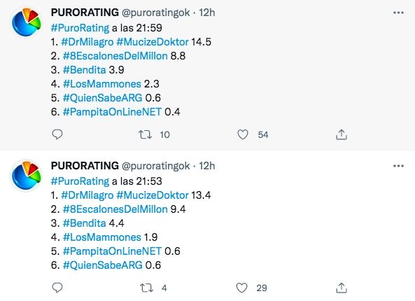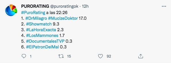 Más tarde, su enfrentamiento con el programa insignia de Tinelli también lo dio como ganador. Mientras que Showmatch logró una audiencia máxima de 9.3 puntos, Doctor Milagro se despachó con 17 puntos.