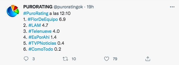 Durante la mañana, Fue Telefe quien se impuso a El Trece. Flor de equipo (Telefe) fue líder indiscutido con 6.9 de picos de rating. Los Ángeles de la mañana (El Trece), su principal rival, por momentos quedó tercero en la franja horaria. Lo máximo que alcanzó el programa conducido por Ángel de Brito fue 4.7.