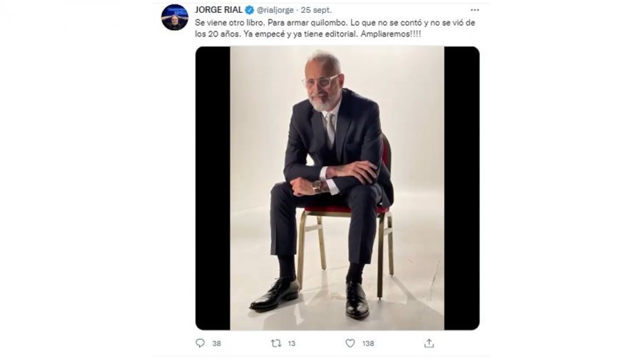 Rial lanzará un nuevo libro, y advirtió que el proyecto llegará "para armar quilombo". A través de su cuenta de Twitter, el periodista informó: "Se viene otro libro. Para armar quilombo. Lo que no se contó y no se vio de los 20 años. Ya empecé y ya tiene editorial. ¡Ampliaremos!”.