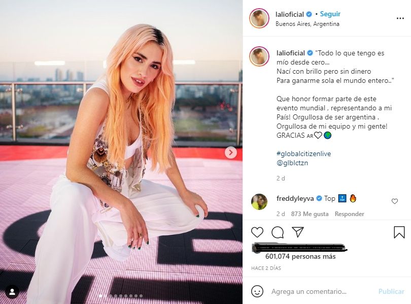 Lali Espósito participó el fin de semana del prestigioso festival internacional Global Citizen. Feliz por la noticia, la cantante compartió en sus redes sociales fotos de su presentación.