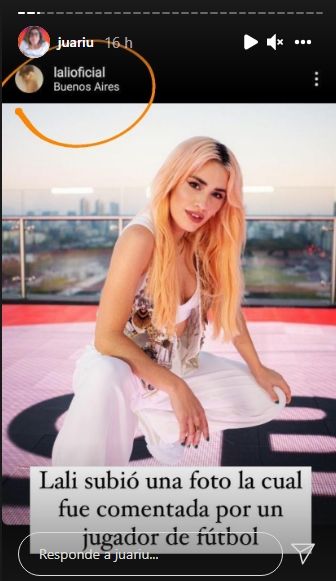 Fue la influencer Juariu quien capturó el recado. "Bueeeeeeee", fue el gesto del jugador de la selección argentina al ver las fotos de Lali.