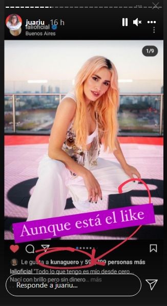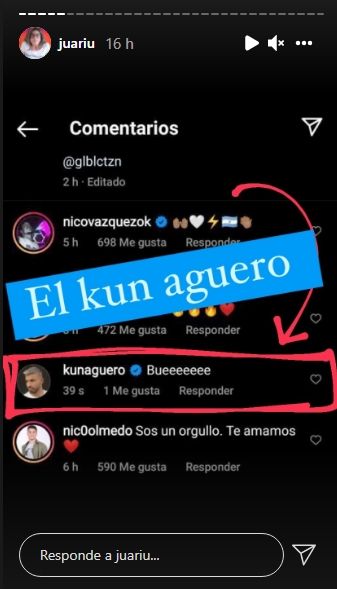 Como era de esperarse, rápidamente la publicación cosechó más de 600 mil "me gusta" y miles de comentarios sobre su importante presentación. Entre los mensajes, sorprendió uno de Kun Agüero. El futbolista le dedicó un sugerente comentario que luego decidió borrar, aunque mantuvo el "like" que le dio.