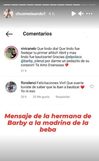 "Pero se olvidaron de invitar a la hermana de Barby", revelaron, adelantando el conflicto familiar que se venía. Flor respondió enfurecida al posteo de la madrina de Abril, quien se mostró feliz por haber participado de la celebración. "Felicitaciones, Vivi. Qué suerte que tuviste al saber que la iban a bautizar, yo ni eso", disparó Florencia indignada.