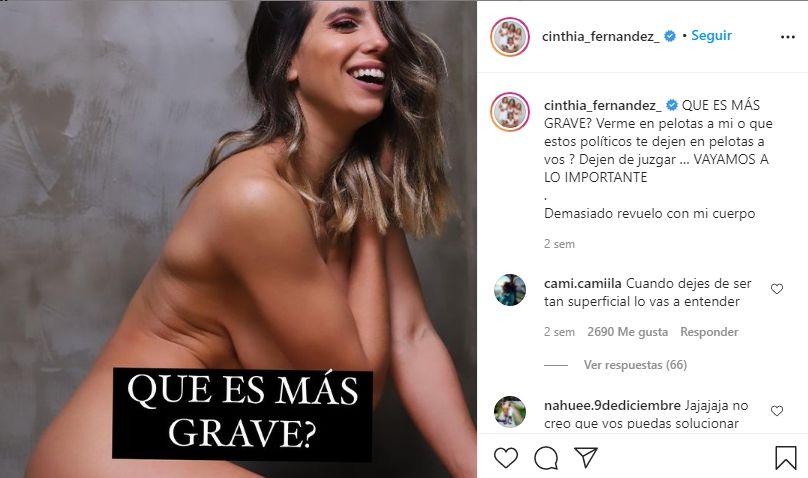 Recordemos que hace unas semanas, Fernández protagonizó un nuevo escándalo cuando publicó una foto en sus redes sociales como Dios la trajo al mundo. En la imagen, la precandidata usó la ironía para comentar. "¿Qué es más grave? ¿Verme en pelot... a mí o que estos políticos te dejen en pelot... a vos?", escribió en el epígrafe del posteo. "Dejen de juzgar, vayamos a lo importante", aclaró.