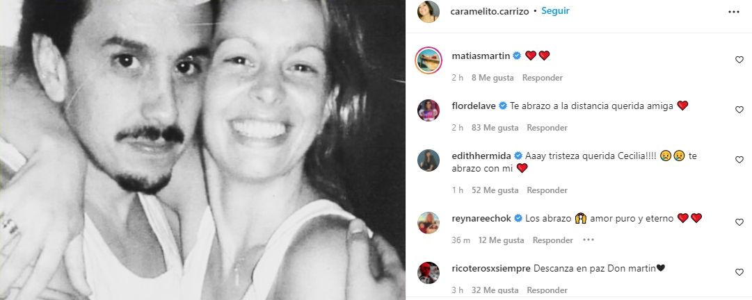 “Decime por favor por donde sigo… Gracias queridos y queridas por tanto cariño, ayuda y apoyo incondicional. Le hicieron muy bien cada día. Infinitas gracias”, expresó Carrizo. “Martín falleció hoy 11 de enero a la madrugada. Su amor, su sonrisa, su música queda en nosotros para siempre” escribió en su primera publicación.