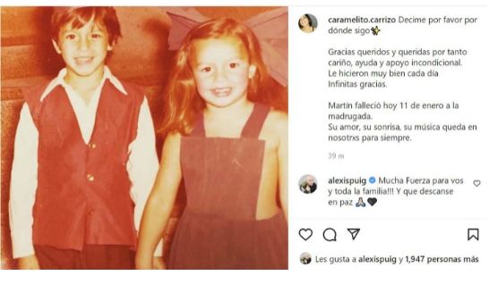 “Decime, por favor, por dónde sigo. Gracias queridos y queridas por tanto cariño, ayuda y apoyo incondicional. Lo hicieron muy bien cada día. Infinitas gracias. Martín falleció hoy 11 de enero a la madrugada. Su amor, su sonrisa, su música queda en nosotros para siempre”, posteó Cecilia.