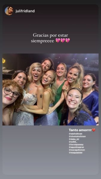 Además de contar con el apoyo de sus padres y hermana, la flamante esposa de Ricky Montaner también estuvo acompañada de varias amigas argentinas. Esto se pudo observar en las diferentes imágenes que fueron publicadas en Instagram, donde se las ve divirtiéndose y muy abrazadas.