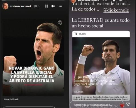 Si hay algo que dio que hablar Viviana Canosa en el último tiempo fue por su negación total a la pandemia. Por dicha razón, celebró cuando el tenista ganó la batalla judicial que le permitió jugar el abierto de Australia.