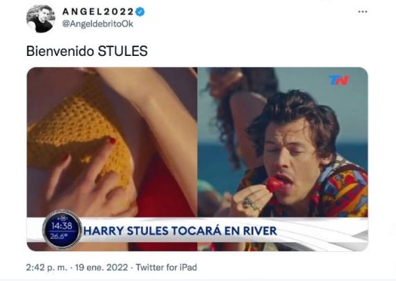 De Brito no dudó en realizar una captura de pantalla del canal donde expresaba: "Harry Stules tocará en River". El periodista compartió la imagen con la irónica frase "Bienvenido STULES".