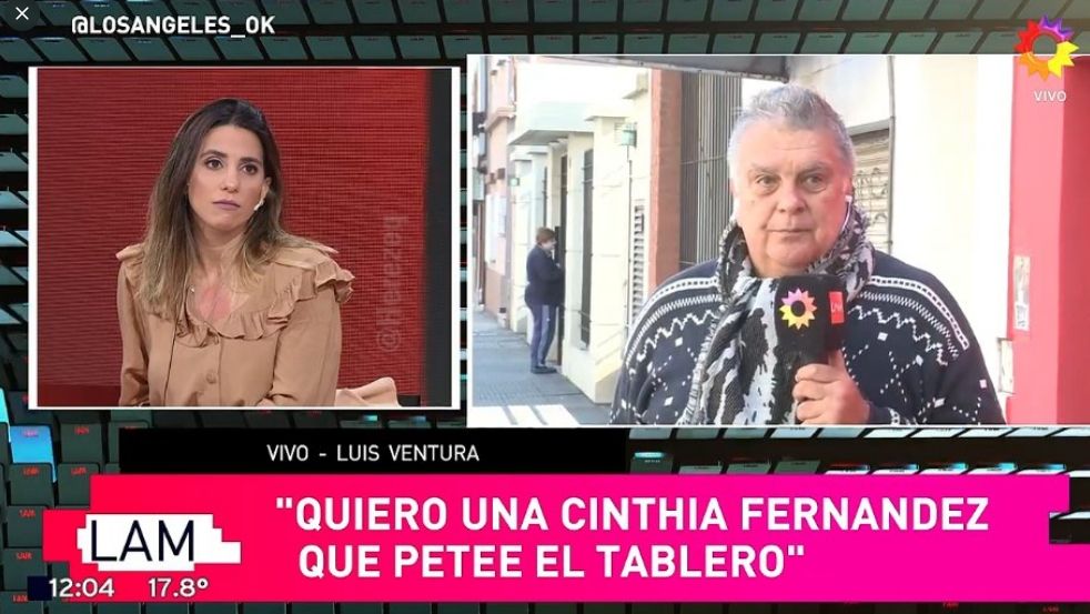 Pero seguramente el más vergonzoso de todos fue cuando Luis Ventura fue entrevistado en LAM sobre la precandidatura de Cinthia Fernández a diputada nacional por la provincia de Buenos Aires. Allí el chimentero expresó que prefería personas nuevas: "Una Cinthia Fernández que vaya y patee el tablero", comentó. Sin embargo, el graph cometió el error de escribir: "Quiero una Cinthia Fernández que petee el tablero", generando una lluvia de críticas en las redes sociales que transformaron a la bailarina y panelista en tendencia nacional.