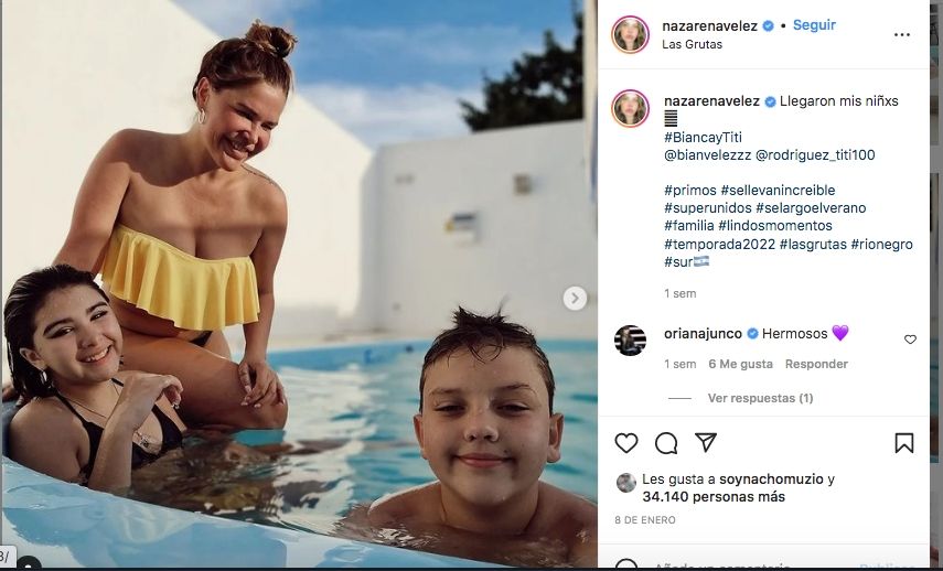 Vélez se instaló en Las Grutas hace semanas para realizar una obra teatral con su novio y en todo este tiempo aprovechó para generar mucho contenido de cómo son sus días con su niño y el resto de la familia que la visita. En ese contexto, se produjo una declaración increíble.