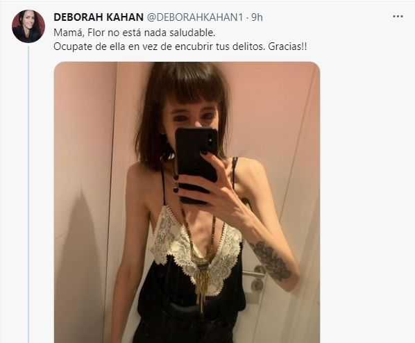 La extrema delgadez generó preocupación en los usuarios, quienes pidieron a la vicepresidenta de la Nación que se ocupe del tema. "Mamá, Flor no está nada saludable. Ocupate de ella en vez de encubrir tus delitos. ¡Gracias!", escribió la comunicadora Déborah Kahan en su cuenta de Twitter. "¡Hagan algo ya! ¡Please! Flor K no está bien", insistió.