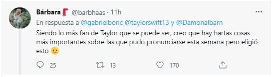 Tras las repercusiones por sus dichos, fue el propio Presidente de Chile, Gabriel Boric, quien se pronunció en su cuenta oficial de Twitter a favor de Swift.