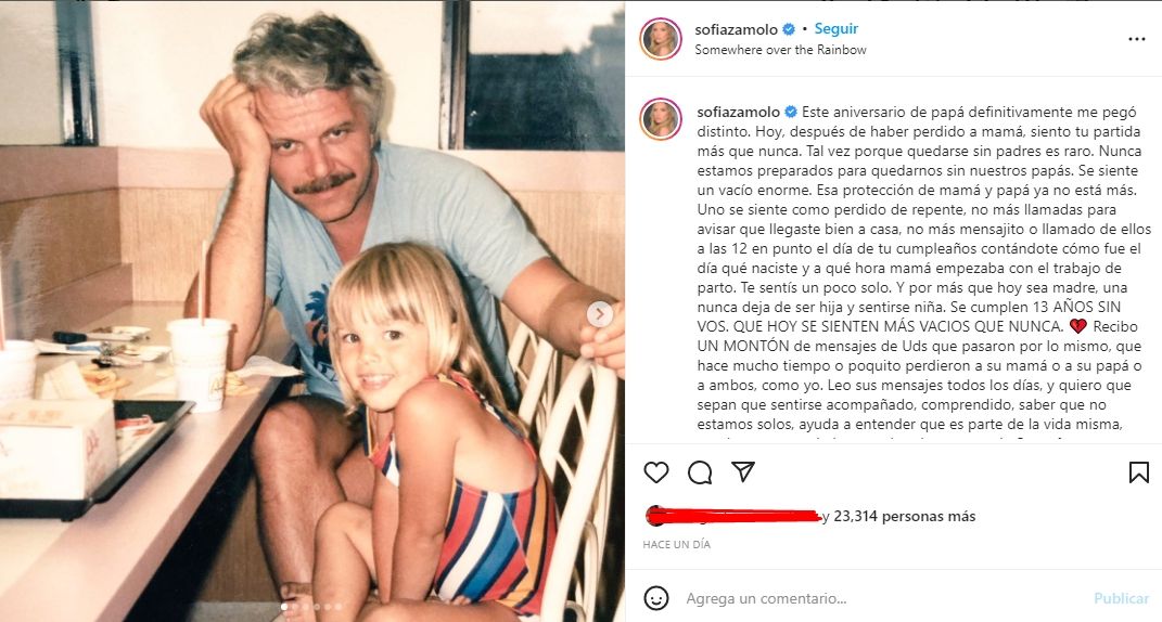 Sofía Zámolo volvió a utilizar sus redes sociales para abrir su corazón y recordar a sus padres. Tras el duro momento que atravesó en 2020 con la muerte de su madre, la modelo recordó a su papá en un nuevo aniversario de su muerte. En este difícil momento, Sofía se mostró muy triste por la ausencia de sus dos padres.