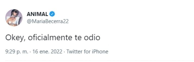 Pero cuando todo parecía haberse calmado entre la ex pareja, la cantante volvió a salir al cruce del trapero el pasado 19 de enero. "Okey, oficialmente te odio", expresó.