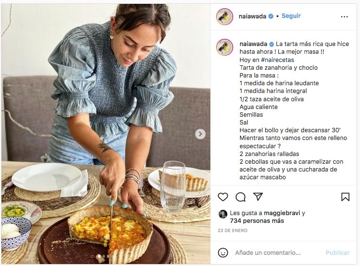 Nai Awada es una generadora de contenidos muy ávida, suele colgar muchas stories a su Instagram e intensificó esa actividad en la cuarentena. Mayoritariamente para tirar buena onda, pasar algunos tips de comida o ejercicios físicos.