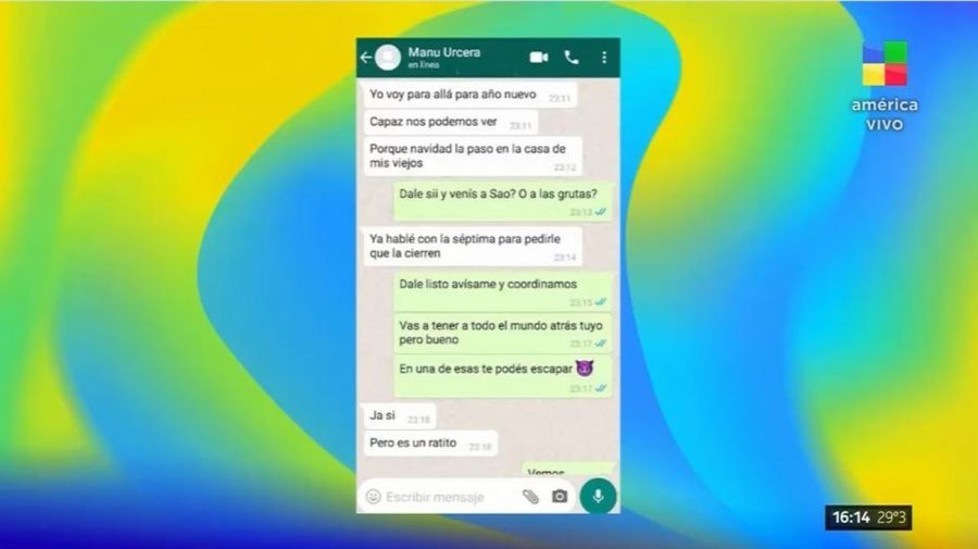Luego, la panelista agregó: "Y este chat, donde hablan de futuros encuentros, le llegó directamente a Nicole. Por lo que se lee, habría un antecedente entre Manu y esta chica de 29 años, Tras primer chat ella empezó a recibir una catarata de chats con esta chica y ella le dijo: ´¿Vos te pensás que tenés 18 años?´".