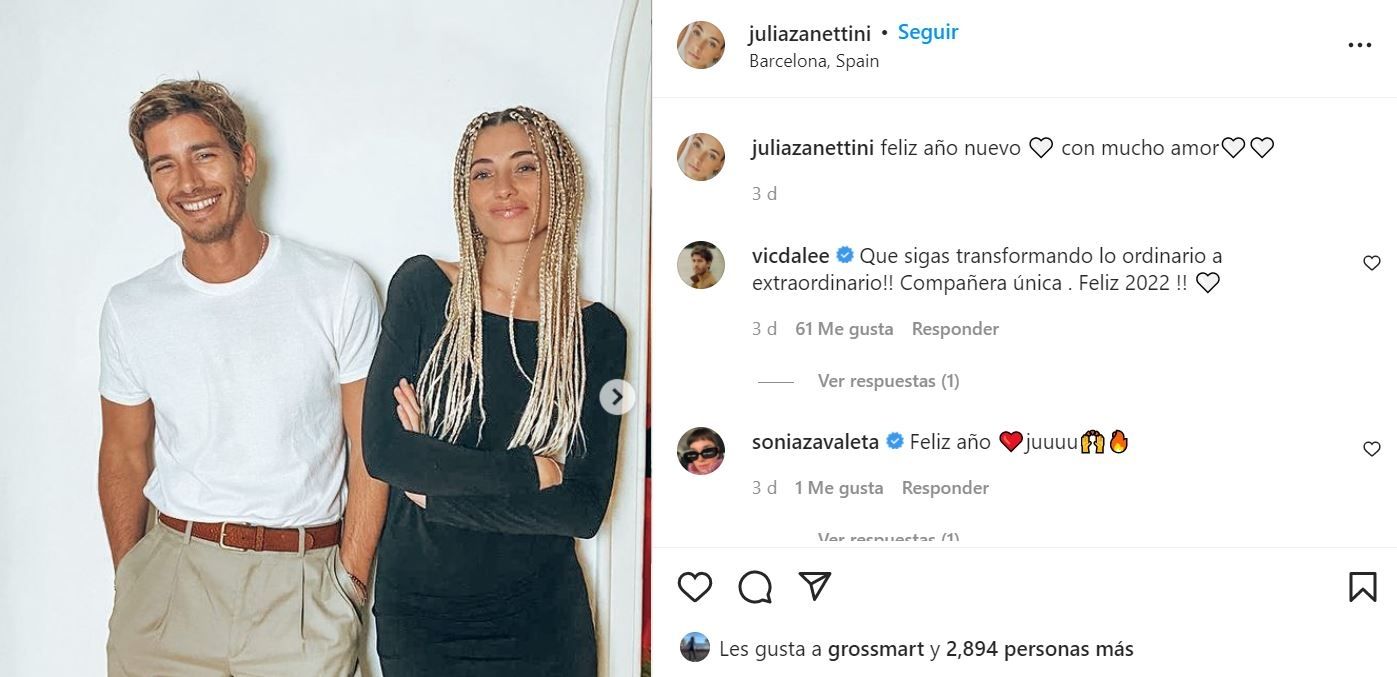 “¡Que sigas transformando lo ordinario a extraordinario! Compañera única. ¡Feliz 2022!”, le escribió Vico con un corazón a Julia Zanettini, una bella y joven modelo de 25 años que, ups, viene de vivir una relación de tres años con otro guapísimo actor con pasado de galancito: Benjamín Alfonso.