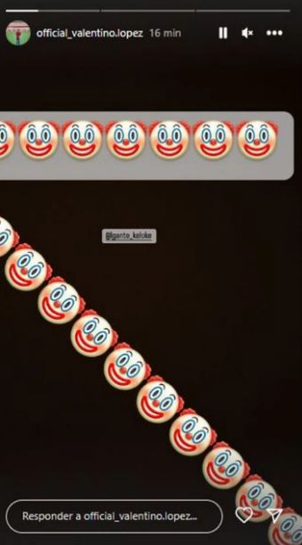 Ante tanta exposición, Valentino, el hijo mayor de la empresaria y Maxi López, subió una historia a su cuenta de Instagram y fue determinante al referirse al cantante. El joven arrobó al referente de la Cumbia 420 y puso muchos emojis con la cara de un payaso.