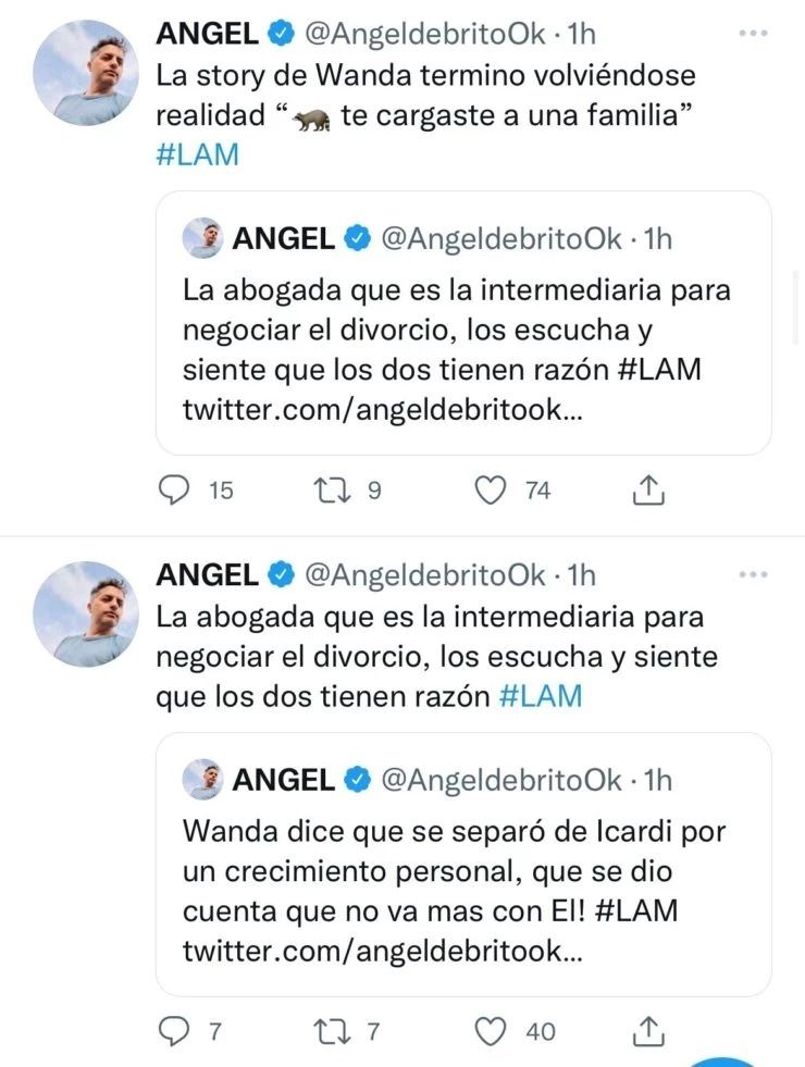 Ahora bien, resulta que hace algunas horas se conoció que Mauro Icardi llegó a la Argentina para poder recuperar su matrimonio con Wanda Nara, pero la hermana de Zaira no lo quiso ver. Fue Ángel de Brito el encargado de dar a conocer los detalles sobre la ruptura de los mediáticos.