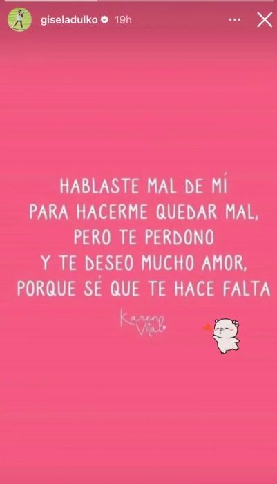 "Hablaste mal de mí para hacerme quedar mal, pero te perdono y te deseo mucho amor porque sé que te hace falta", dice el mensaje que generó curiosidad.