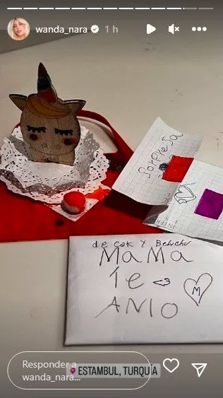 Desde su cuenta de Instagram, Wanda posteó las cartitas que recibió de sus pequeños. En varios sobres se ven papeles y dibujos con las frases "¡Sorpresa!", "Mamá te amo".