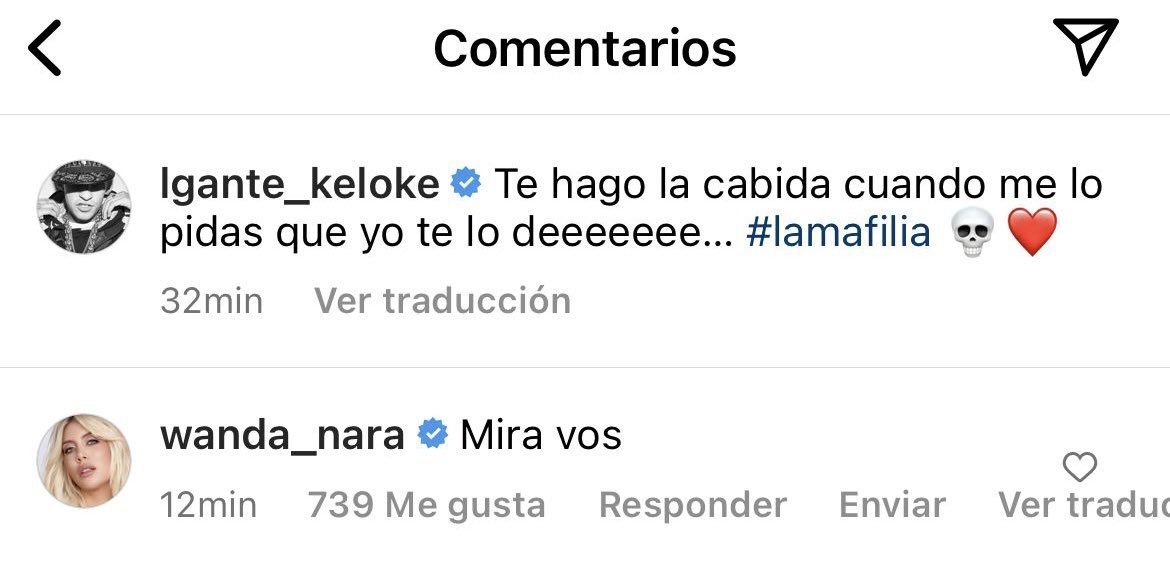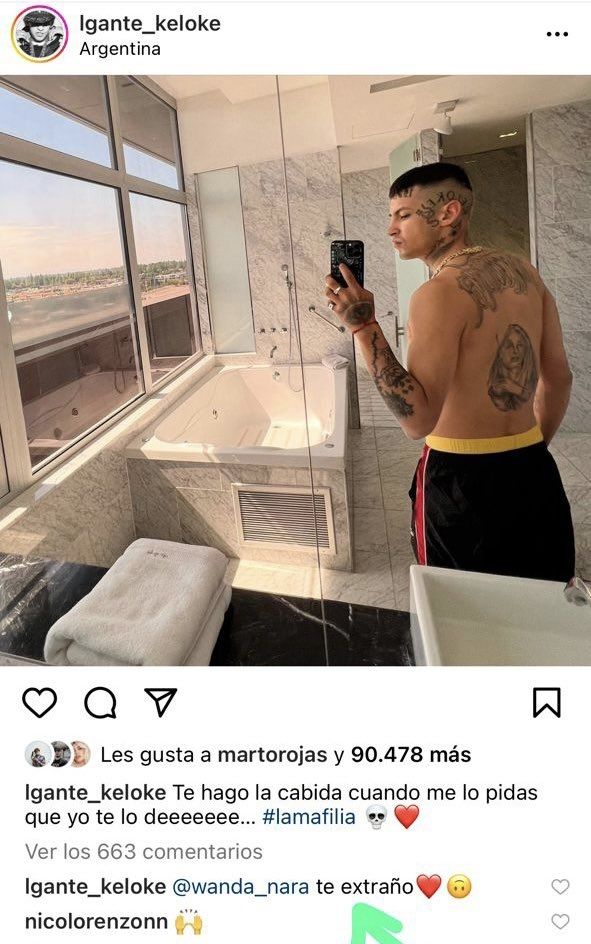 Como si fuera poco, se mostró muy cariñosa con L-Gante en las redes sociales. Y es que, el cantante de Cumbia 420 compartió una foto en su cuenta de Instagram donde se lo ve sin remera. La empresaria le escribió: "Mirá vos". Fue entonces que el famoso le responde: "Te extraño".