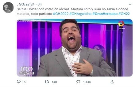 Así, este domingo los tres midieron sus fuerzas y los televidentes decidieron. Holder fue el más votado y quien debió abandonar el famoso reality de Telefe con el 59,40% de los votos.