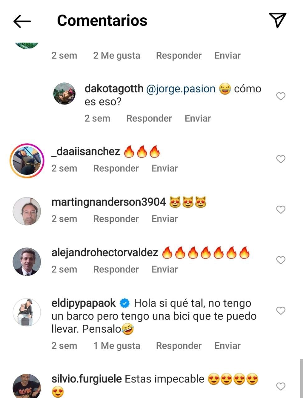 Al no creerle su coartada, la rubia comienza a investigar en las redes sociales y descubre que el artista solía reaccionar a publicaciones de la morocha con corazones y hasta con mensajes. “Veo que tanto en TikTok como en Instagram le manda corazones. Hay un video de Dakota en un barco donde le pone 'yo no tengo un barco pero tengo una bici. Te puedo llevar, pensalo'. Le re tira los perros”, expresó indignada.