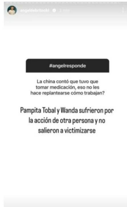 Como si fuera poco, hace algunos días la China Suárez confesó lo mal que la pasó en el WandaGate y hasta contó que tuvo que tomar medicación. Fue Ángel de Brito quien fue criticado por cómo trató el tema en su programa y él no dudó en destrozar a la actriz: "Pampita, (Eugenia) Tobal y Wanda (Nara) sufrieron por la acción de otra persona y no salieron a victimizarse".